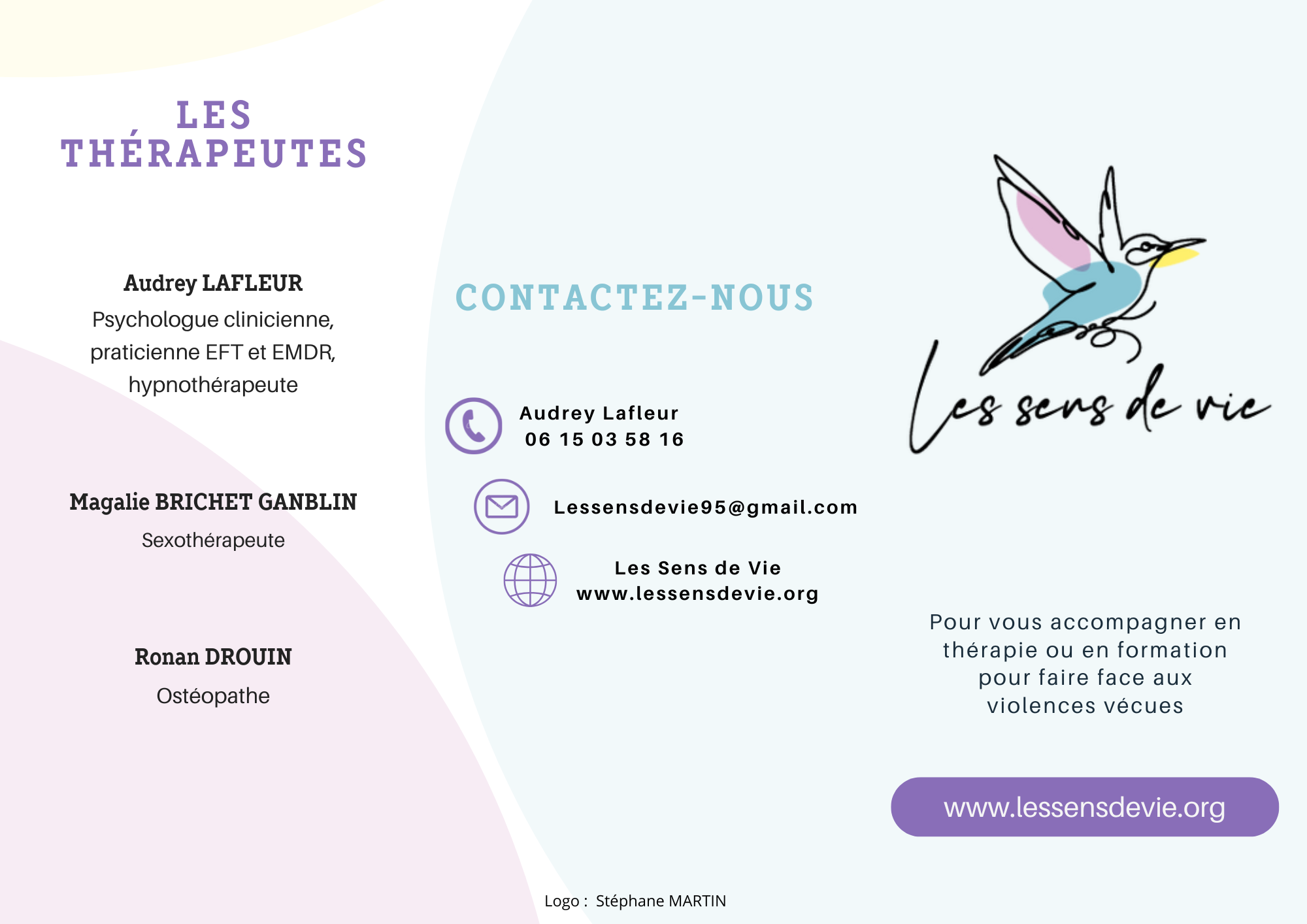 L’association Les Sens de vie a été créée pour que chaque victime reçue puisse retrouver la paix. Violenté.e.s, abîmé.e.s, détruit.e.s, elles vivent dans un corps et un mental qui souffrent.